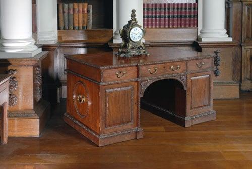 Writing table made for the library at Temple Newsam probably by William Hallett to designs of Daniel Garrett, a Palladian architect. The mouldings correspond and there is mention of it in an inventory of 1808.