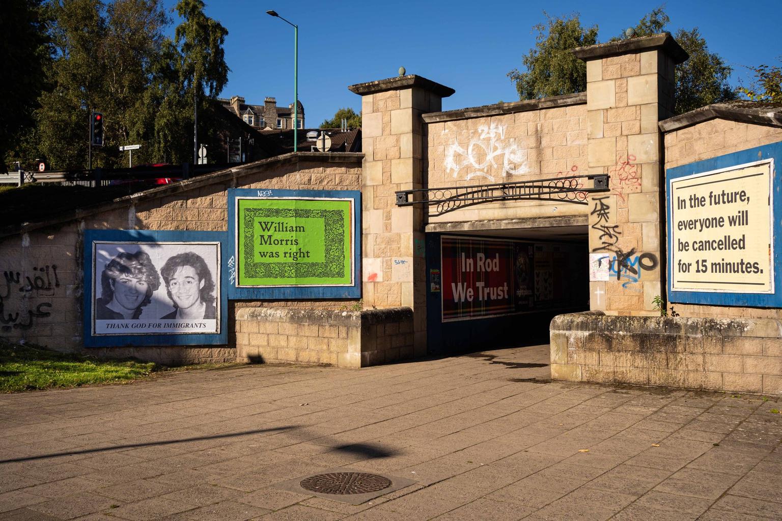 McSorley’s work for the project has included installing a series of Deller’s text posters throughout the city. Designed to make people think twice, his A World Without Murdoch was displayed on the DC Thomson building, the pinnacle of the Scottish print trade – and Dundee’s defining industry.