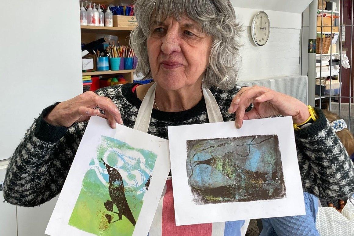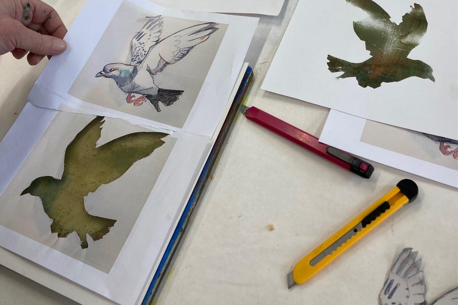 Sarah Lawrance: We did a mixture of things. For example, we took people to a couple of sessions at the Great North Museum – they have some of the birds which Thomas Bewick drew from, so we did some life drawing from the birds, and [the group] met the curator of biology who talked to them about the specimens. And then follow-up sessions at the Shipley Art Gallery, where they developed that work into colour work, and in the end they did lovely colourful monoprints and collages.