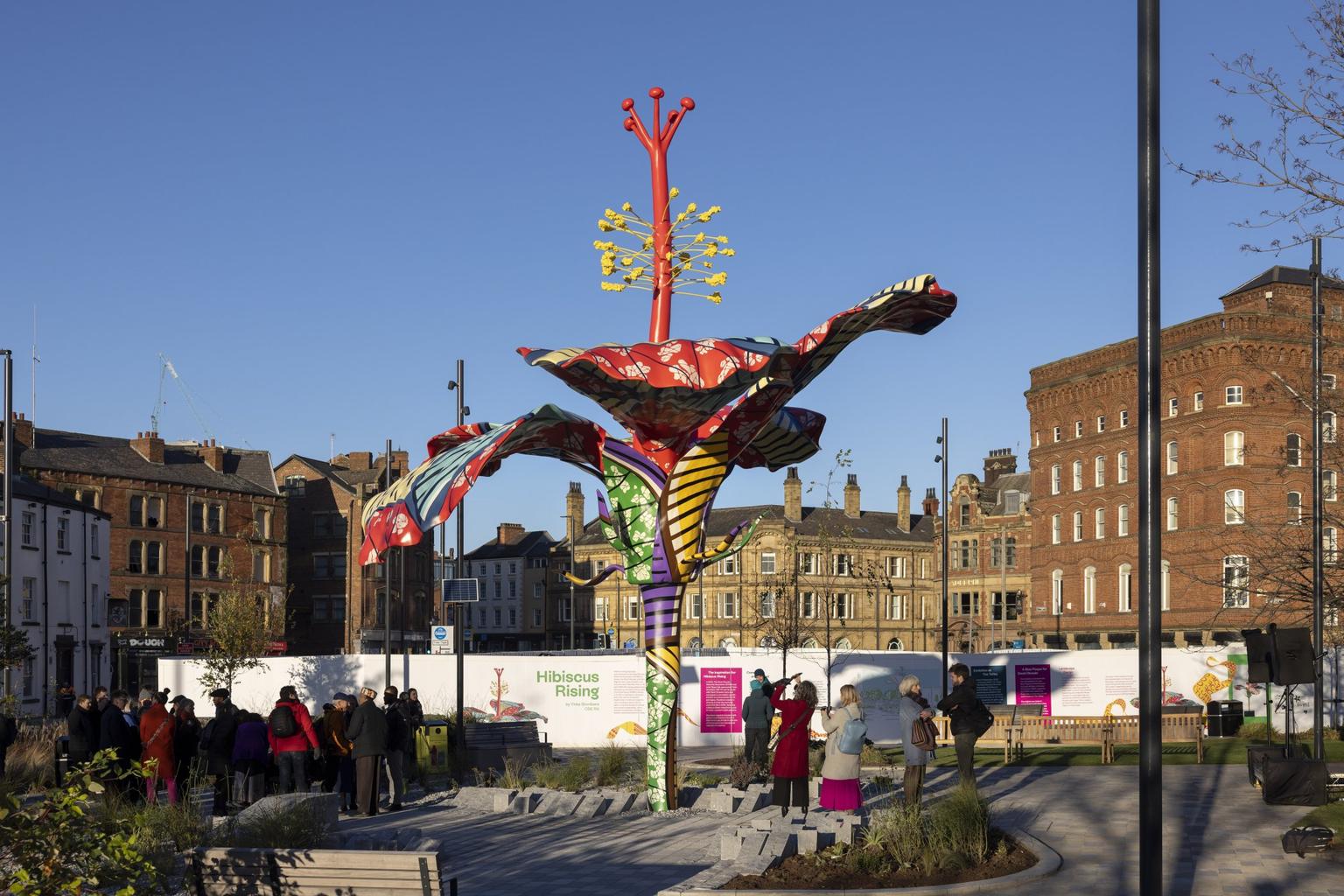 Shonibare’s first permanent public art commission in the north of England, Hibiscus Rising is intended to stand as a beacon of hope.