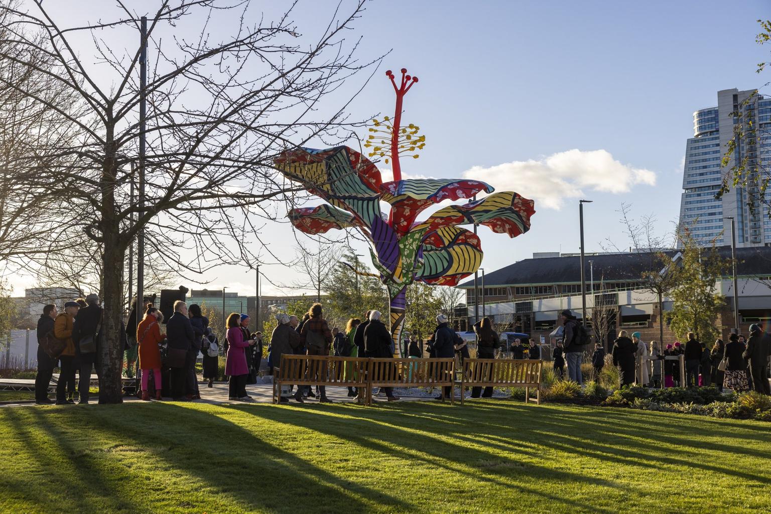 A sculpture of a hibiscus flower by celebrated artist Yinka Shonibare blooms at the centre of a new community space in Leeds. Discover how your support has helped bring this project to life.