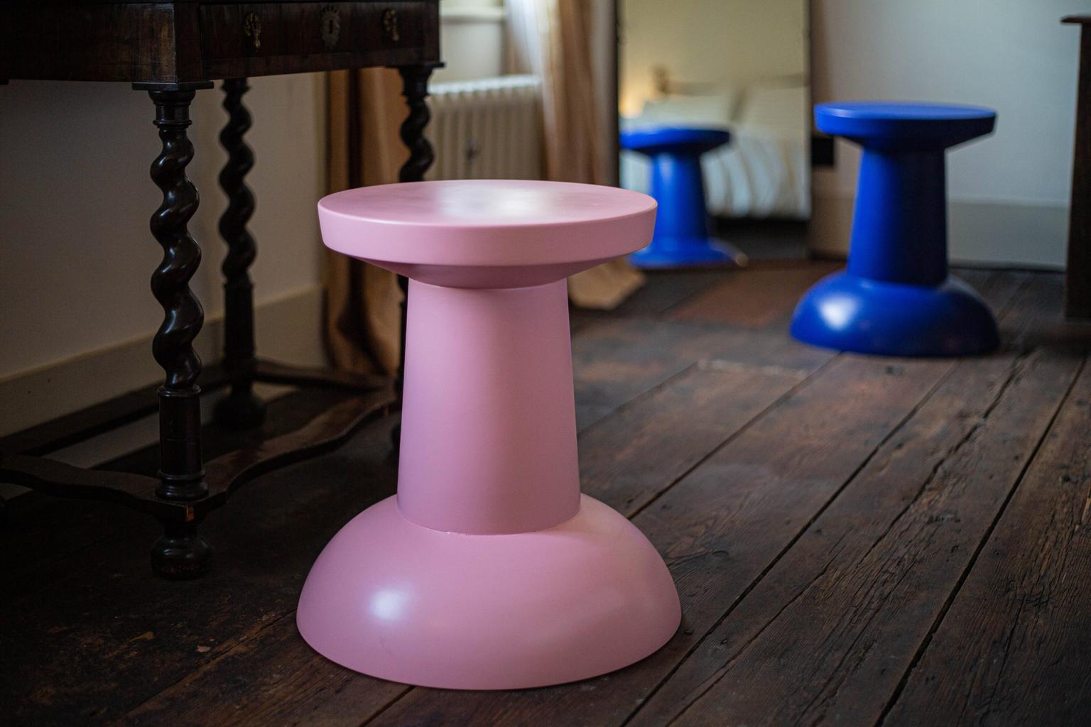 Visitors could listen into this conversation while sitting on sculptures of large-scale map pins positioned throughout the house.